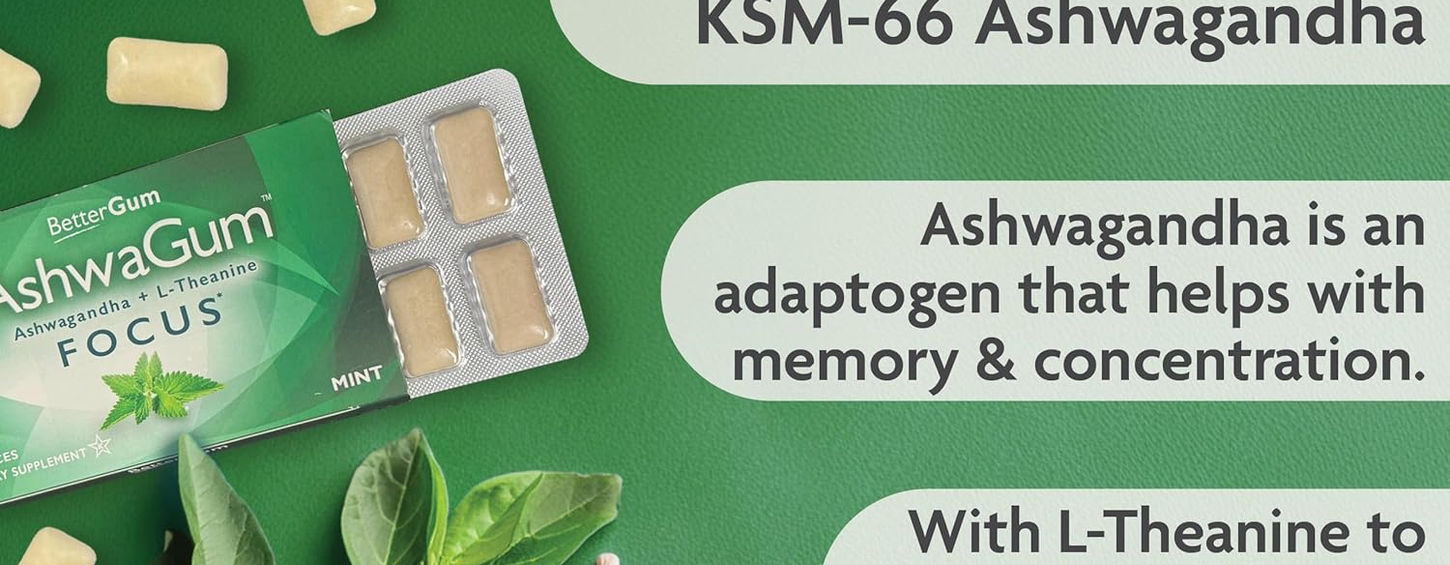 BetterGum contains Ashwagandha, L-Theanine, and GABA, in a delicious mint flavored gum that’s easy to take along and chew wherever we go. What can be easier (and better tasting) than that?